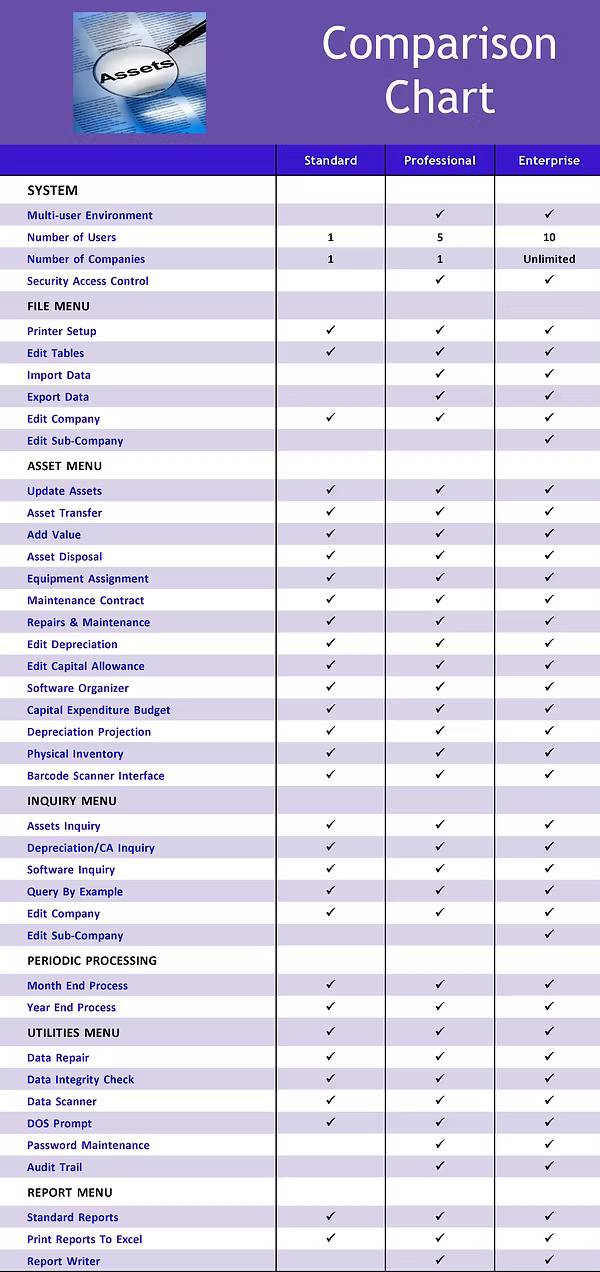 Fixed Asset Pro caters for business of all sizes, select the edition that is most suitable for your need.