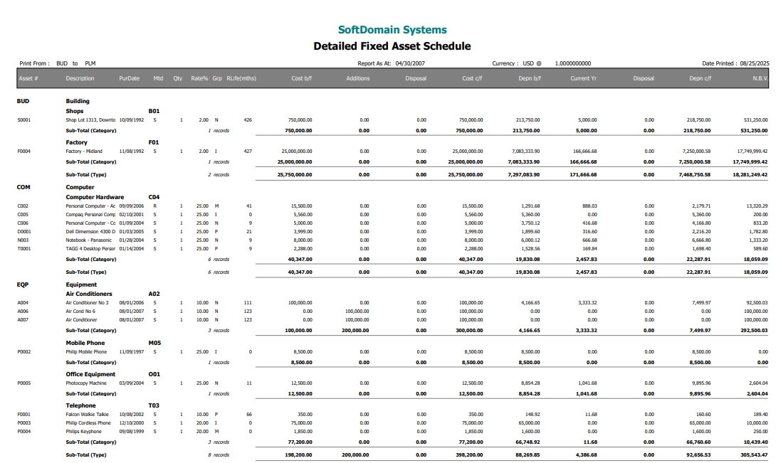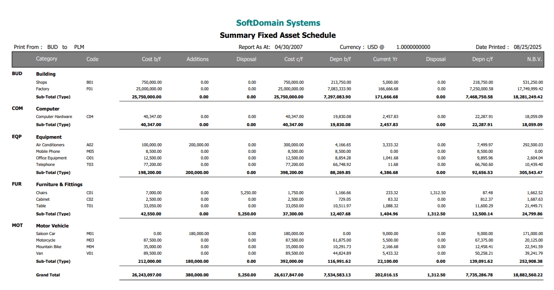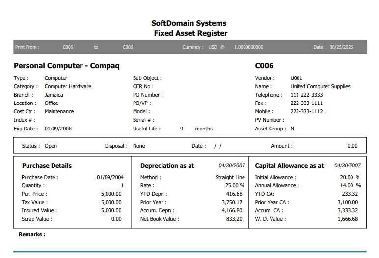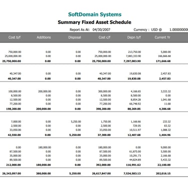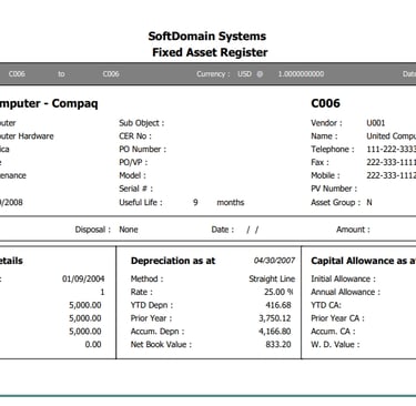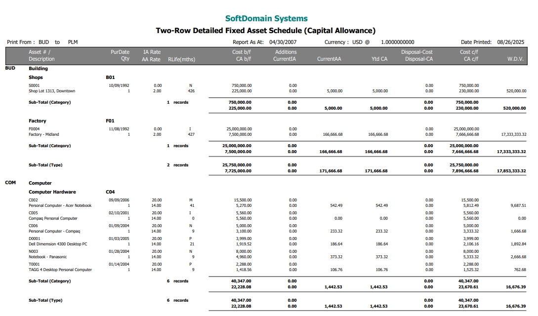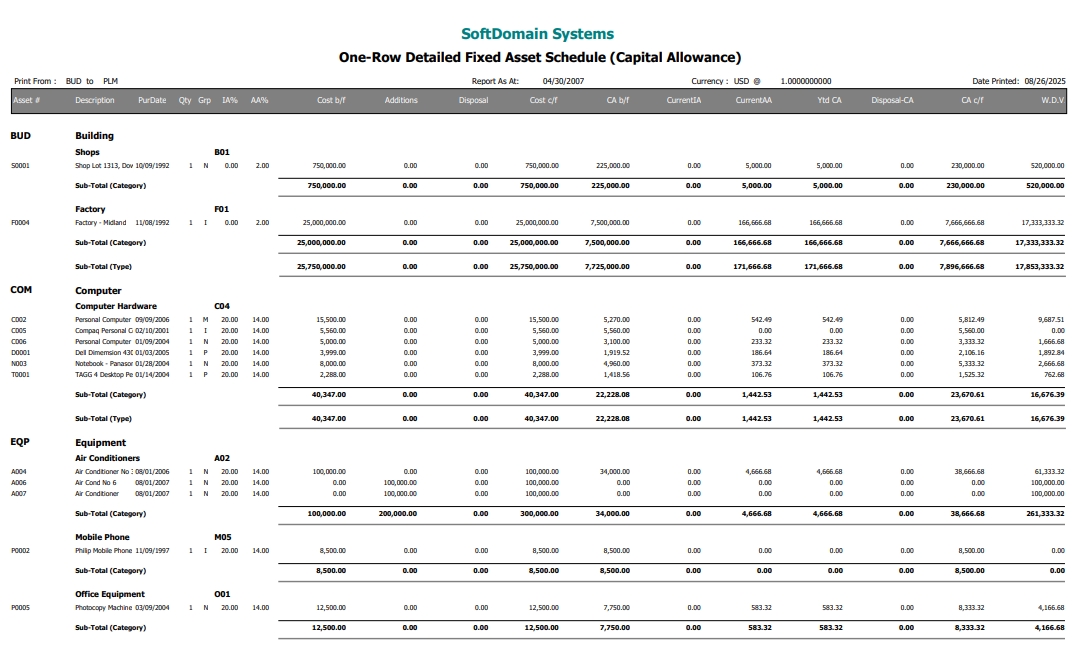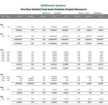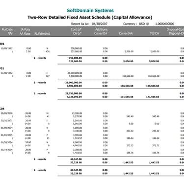 1-Row Fixed Asset Schedule (Capital Allowance)